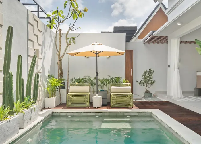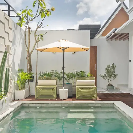 Rosso Verde 2Br Villa Near Seminyak is op 3 km afstand van zesbaansrotonde Denpasar gelegen en biedt een zwembad, wat zorgt voor een ontspannen verblijf. De villa verwacht gasten op een terras met een zwembad.